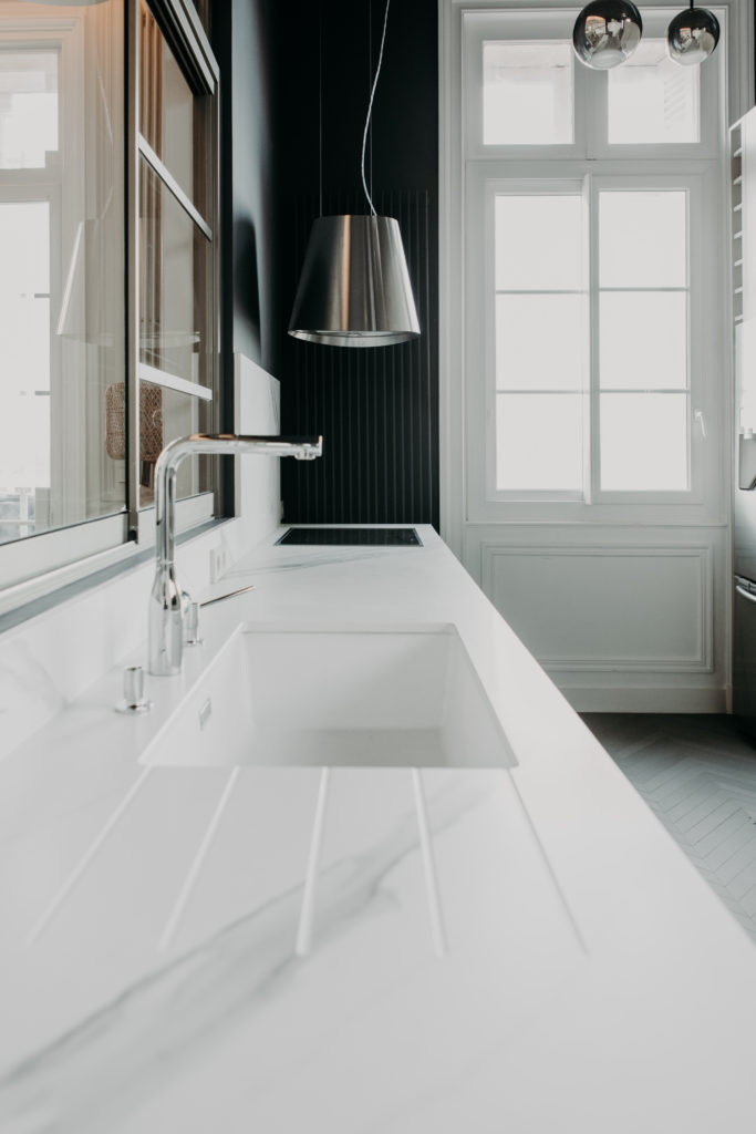 Il présentait de belles prestations classiques, mais nos clients souhaitait le dynamisé, lasse des moulures Haussmaniennes qu'ils côtoyaient déjà à Paris.